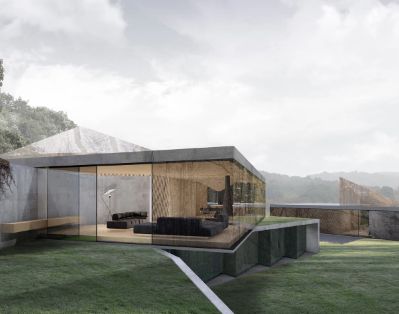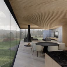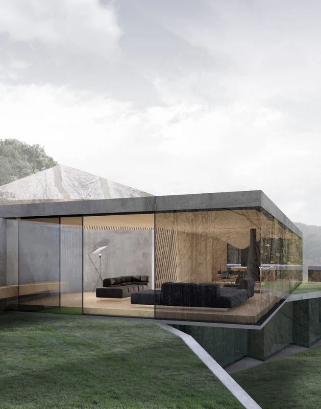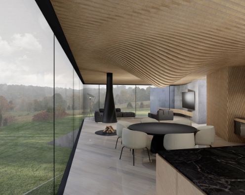 Namų planinė struktūra organizuojama laisvo planavimo principu privačias erdves slepiant nuo kvartalo viešųjų erdvių už reljefo plastiką atkartojančių sienų, taip vizualiai skaidrus namas tampa privatus ir apsaugotas nuo pašalinių žvilgsnių ir taip pat leidžia ten gyvenantiems betarpiškai būti gamtoje. Architektūriniai pasiūlymo sprendiniai yra nulemti charakteringo teritorijos reljefo. Maksimaliai siekta išsaugoti teritorijos peržvelgiamumą ir neaprėpiamos erdvės pojūtį.