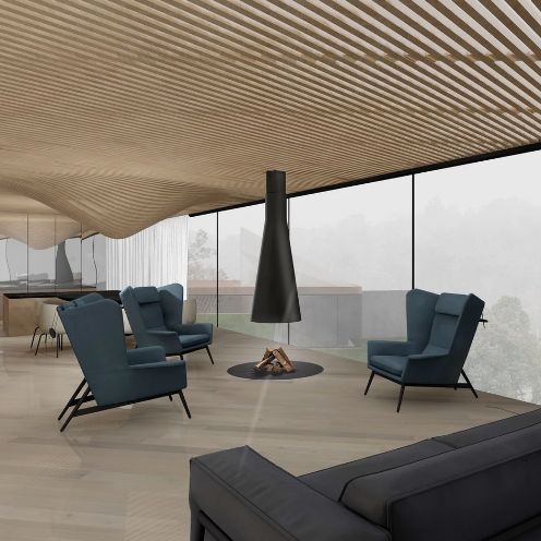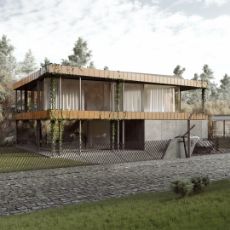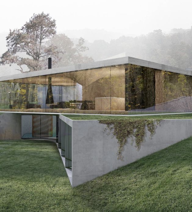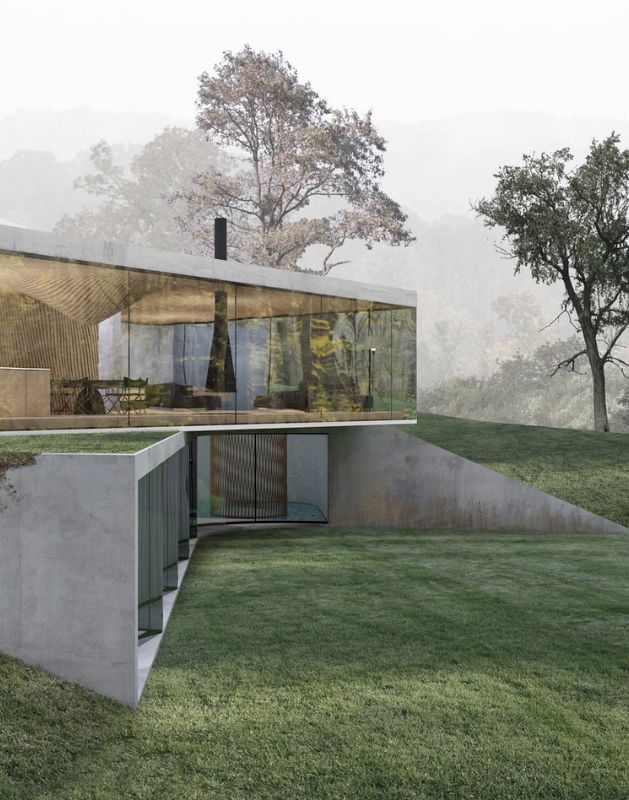 Namų planinė struktūra organizuojama laisvo planavimo principu privačias erdves slepiant nuo kvartalo viešųjų erdvių už reljefo plastiką atkartojančių sienų, taip vizualiai skaidrus namas tampa privatus ir apsaugotas nuo pašalinių žvilgsnių ir taip pat leidžia ten gyvenantiems betarpiškai būti gamtoje. Architektūriniai pasiūlymo sprendiniai yra nulemti charakteringo teritorijos reljefo. Maksimaliai siekta išsaugoti teritorijos peržvelgiamumą ir neaprėpiamos erdvės pojūtį.
